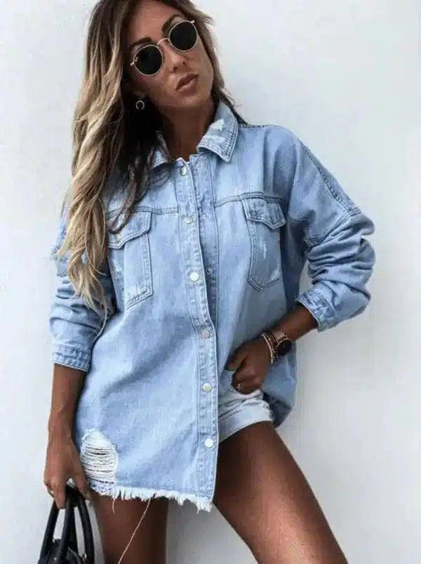 - Additional Features: Two chest pockets with button flaps; distressed detailing on hem