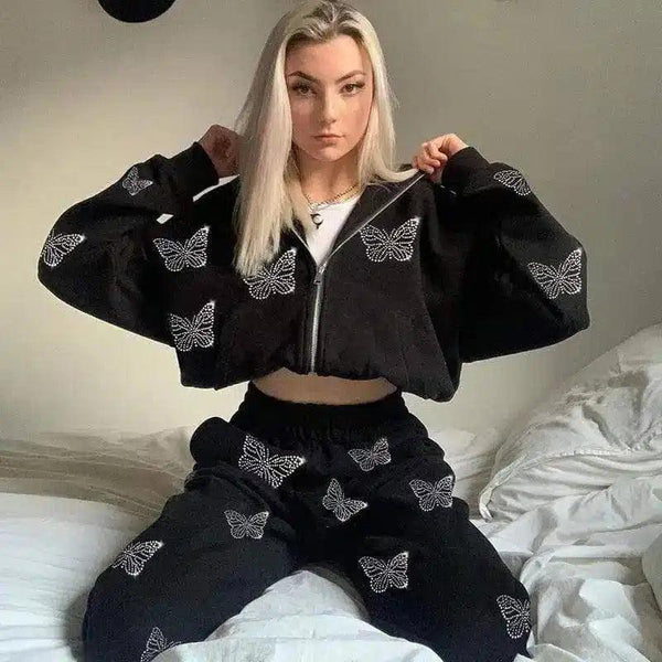 Women's Butterfly Embroidered Tracksuit Set