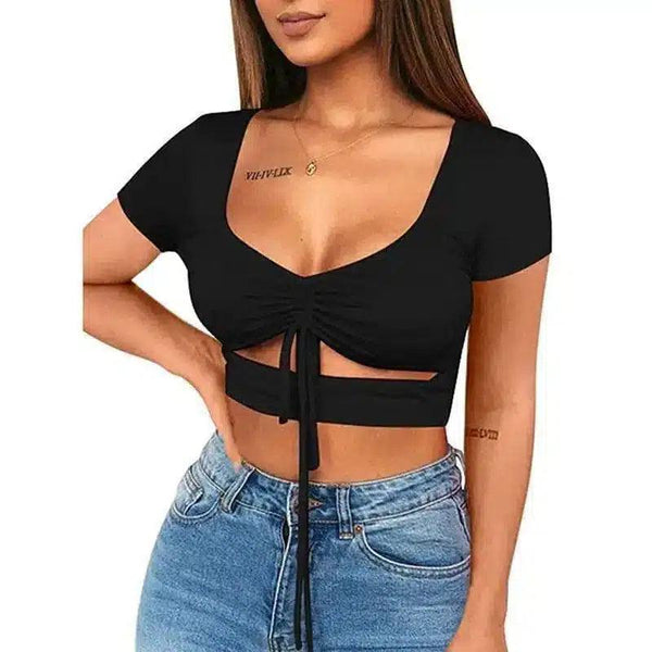 Tie-Front Crop Top with Short Sleeves