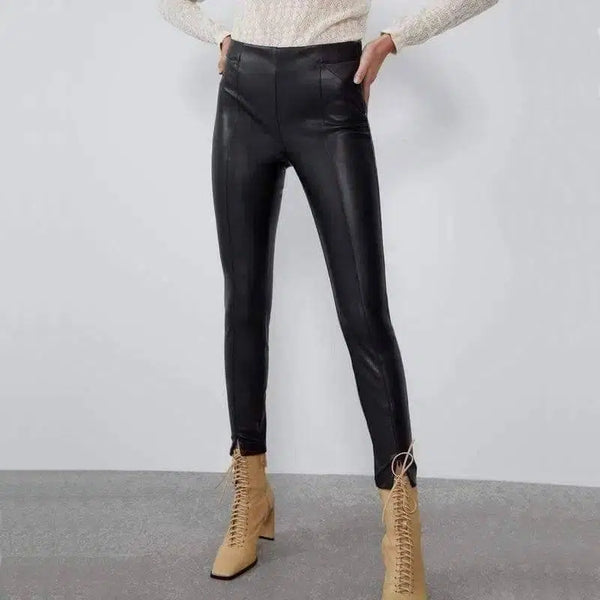 Mid-rise faux leather leggings