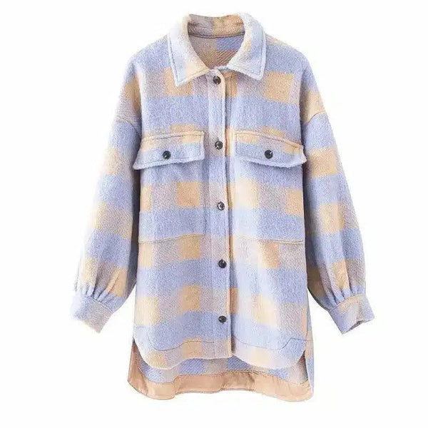 - Chic Checkered Pattern: Stand out in style with the jacket's eye-catching blue and beige checkered design, a timeless pattern that adds a touch of classic charm to any outfit.