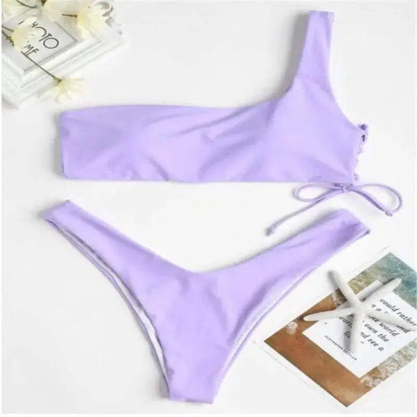 Product Description: One-Shoulder Solid Color Split Swimsuit Bikini