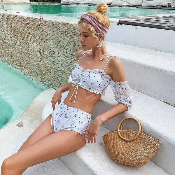 Product Description: Printed Polka Dot Ruffled Drawstring Bikini