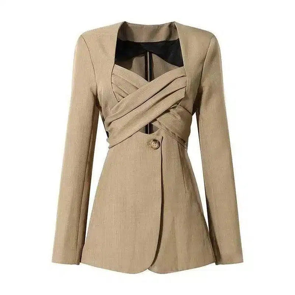 Women's Tailored Buttoned Blazer with Unique Collar