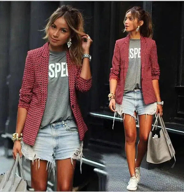 Womens Casual Blazer and Denim Shorts Set
