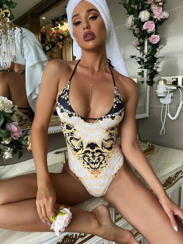 - Style: Retro print one-piece swimsuit with a bikini silhouette
