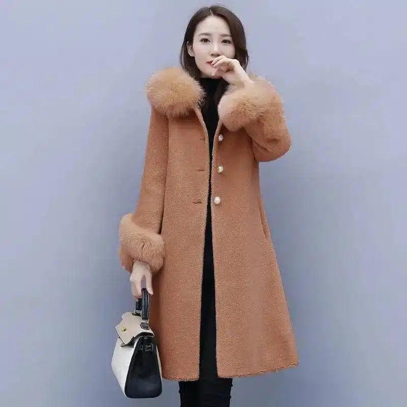 Best Women's Shearling Coat for Winter Style-Camel-2