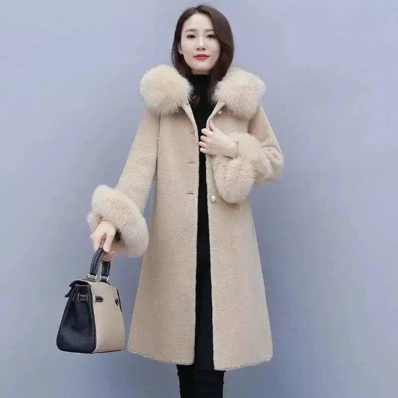 Best Women's Shearling Coat for Winter Style-Beige-3