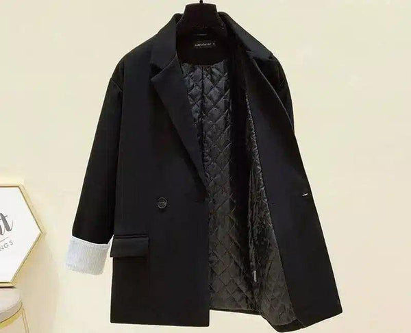 - Additional Details: Single-breasted with front button closure and a chest pocket; interior lining with a quilted design