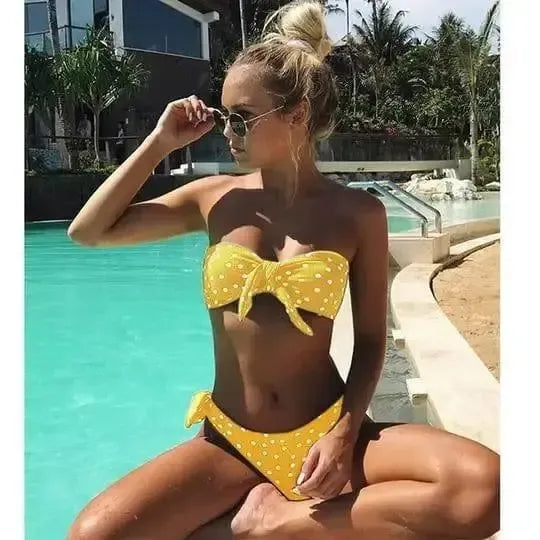- Style: Split bikini with dot print