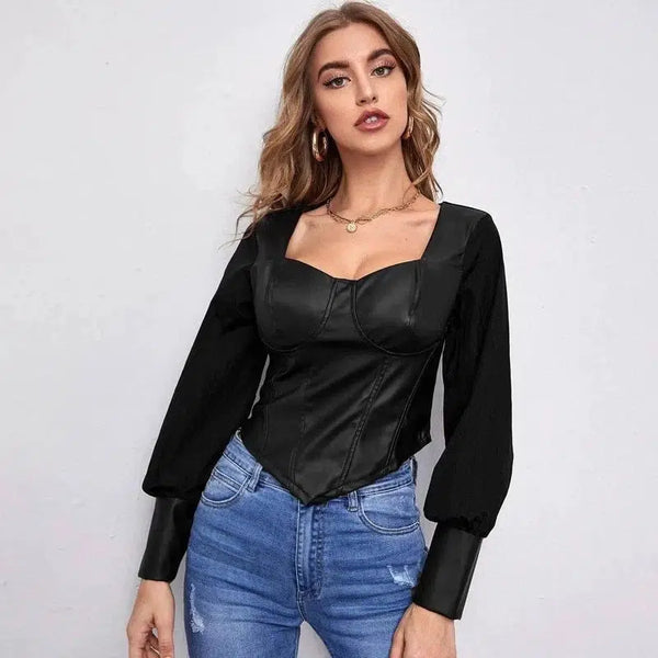 Stitching Puff Sleeve T-Shirt Bottoming Shirt