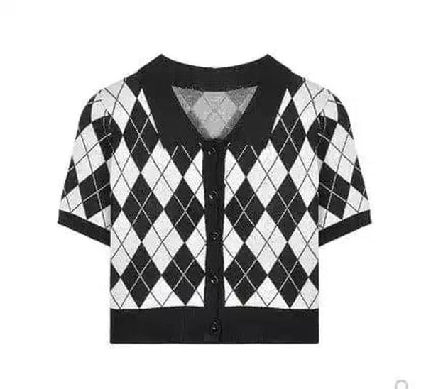 Checkered Short Sleeve Knit Cardigan