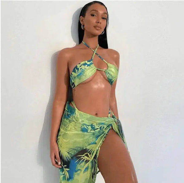 Three-piece Print Wrap Chest Halterneck Vest Miniskirt