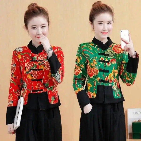 Choose between vibrant red and green, both adorned with intricate floral designs. Make a statement with your style when shopping for Asian style clothing online.