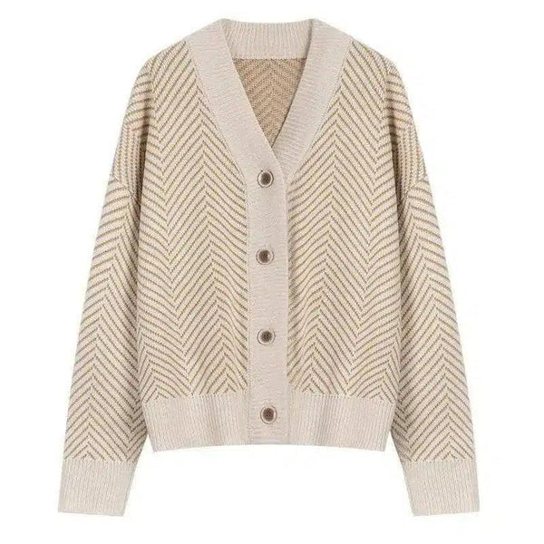 V Neck Diamond Striped Lazy Style Literary Knit Cardigan