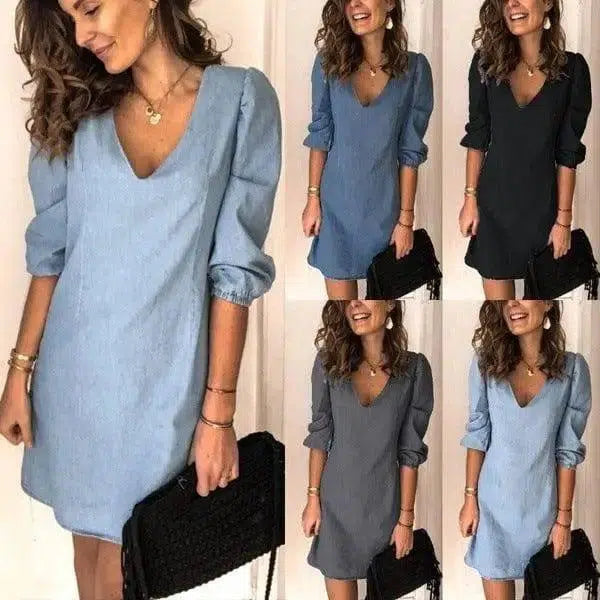 V-neck Short-sleeved Casual Loose Cotton And Linen Dress