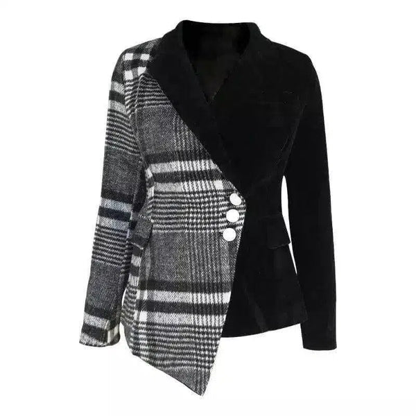Women's Plaid Asymmetrical Blazer with Buttons
