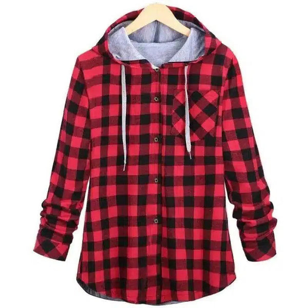 Hooded Flannel Checkered Shirt with Pockets