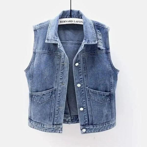 Stylish Denim Womens Vest - Distressed & Functional