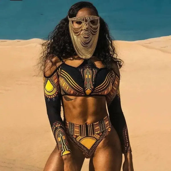 Women's Long Sleeve Printed High Waist Bikini Two Piece