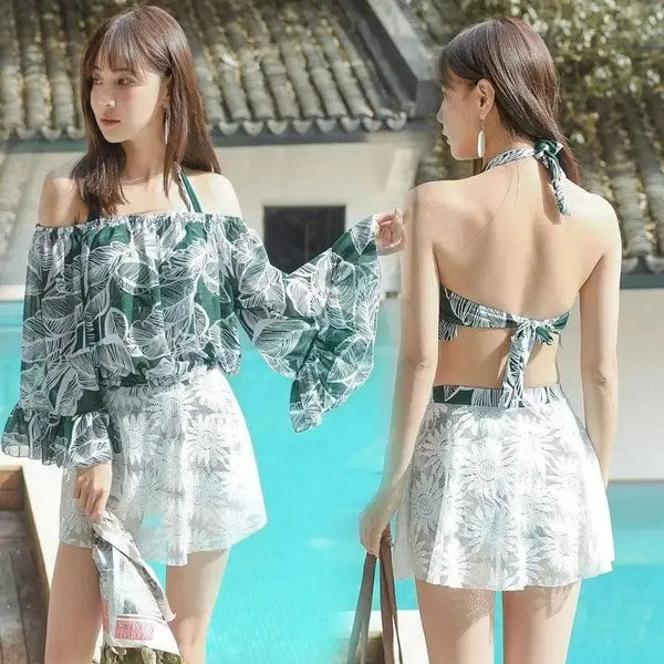 Women's Three-piece Swimsuit Gathered to Cover Belly