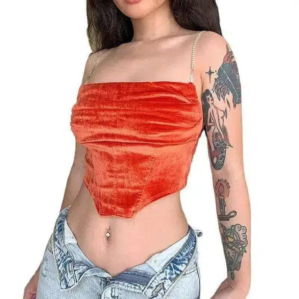 Velvet Strapless Crop Top with Chain Straps