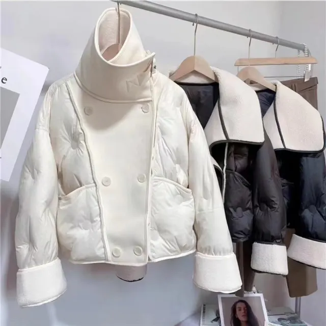 Maillard Lapel Short Pu Stitching Loose Thick Down Jacket - White