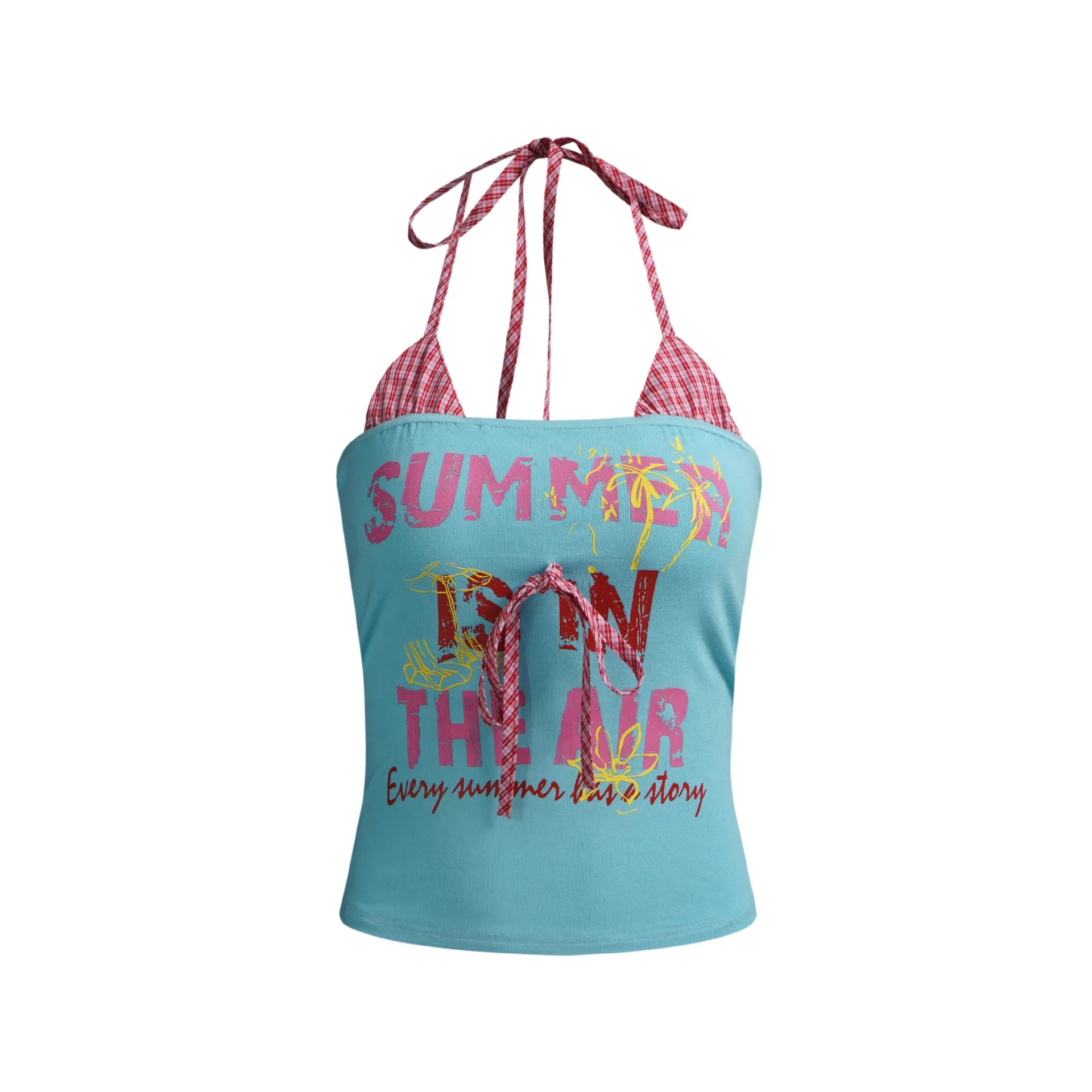 Maillard Letter Print Fake Two-piece Suspender Vest For - Blue