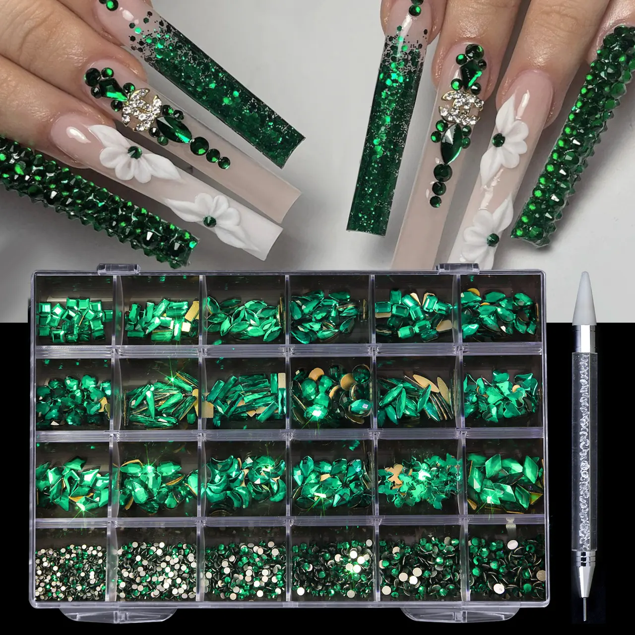 Manicure 24 Grid Diamond Jewelry Suit - 03 Dark Green