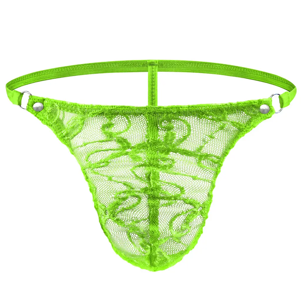 Transparent Mesh Dark Pattern Low Waist Underpants - Green