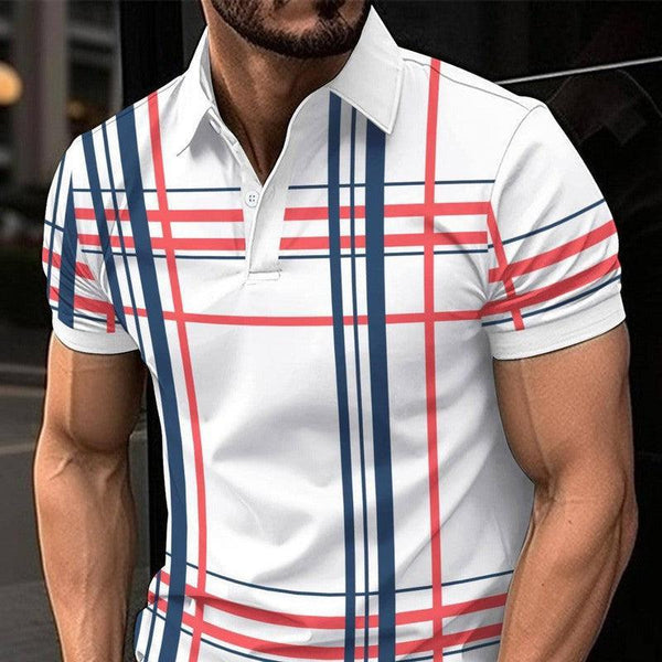 Men's Printed Lapel Button Sport Short Sleeved Shirt Navy Blue / 3XL