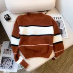 Mera Sweater Loose Contrast Color Striped Short Style - Khaki