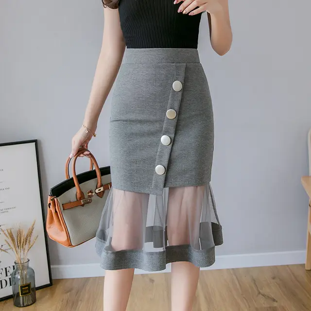 Mesh Stitching Sexy One-step Skirt Mermaid Skirt - Grey