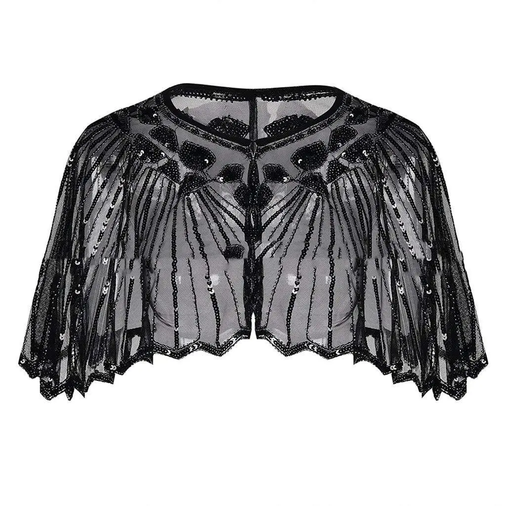 Mesh With Sequins Short Cape Evening Dress Party