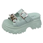 Metal Buckle Heightening Sponge Cake Sandals And Slippers - Green
