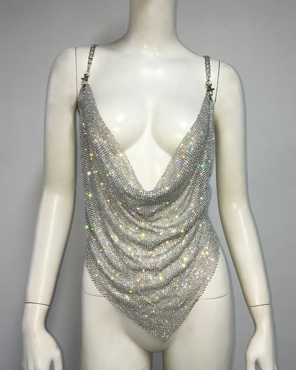 Metal Rhinestone Chain Sexy Suspenders Irregular Vest - Silver