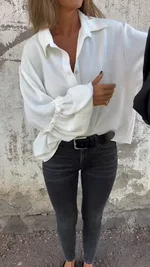 Minimalist Long Sleeve Versatile Loose White Button Shirt - White