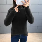 Mink Fur Short Autumn And Winter Half Turtleneck Base Sweater - Black