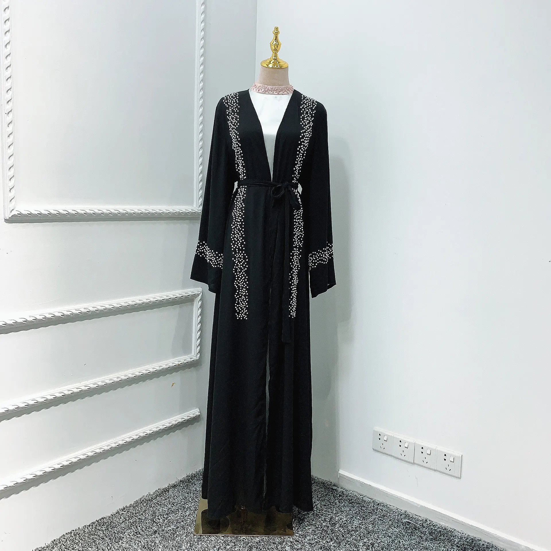 Muslim Solid Color Beaded Middle Eastern Robe Dress - Black