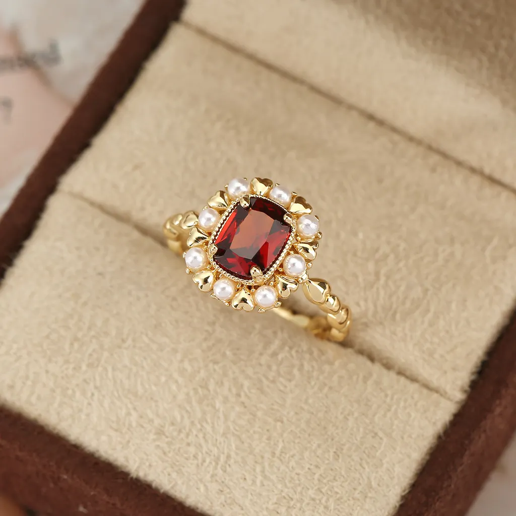 Natural Stone Ring Garnet Red Exaggerated Light Luxury - Gold