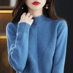 Autumn And Winter Sweaters Half Turtleneck - Blue