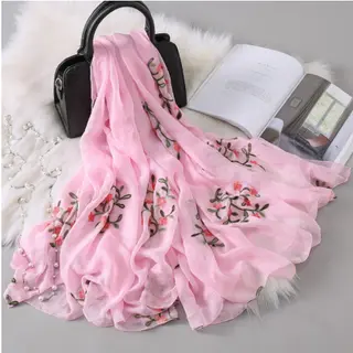 Autumn And Winter Long Embroidered Scarf - Gouache