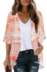 Beach Bikini Sun Protective Blouse Vacation Chiffon Printed Cardigan
