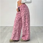 Leopard Print Lace-up Wide-leg Pants - Pink Heart.