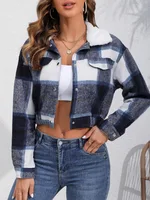 Fast All-match Plaid Long Sleeve Short Top - White