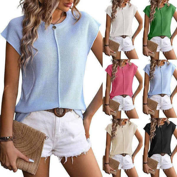 New Knitted Round Neck Short-sleeved Top Summer Casual Loose