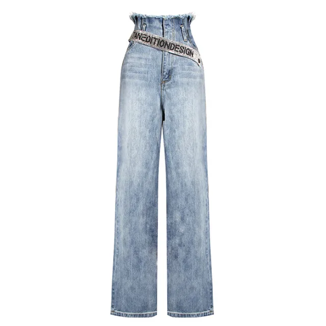 Rhinestone Letter Belt High Waist Big Long Legs - Light Blue