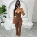 Product information: Color: Brown Stretch: Slight stretch Pants length: Full-length pants Sizes: S, M, L Style: Jumpsuit Fabric name: Polyester Pants fit: Slim-fit Sleeve length: Sleeveless Size: Note: 1. Asian sizes are 1 to 2 sizes smaller than European and American people. Choose the larger size if your size between two sizes. differences due to . 2. Please check the size chart carefully before you buy the item, if you don't know how to choose size, please contact our customer service. 3.As you know, the different computers display colors differently, the color of the actual item may vary slightly from the following images. Packing list: Jumpsuit * 1 Product Image: