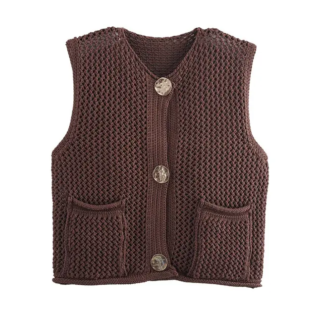 Spring And Summer And Style Breasted Thick Needle Knitted Vest Top -