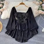 Product information: Skirt type: A-line skirt Color: white, black Sleeve type: regular Main fabric composition: polyester Waist type: high waist Size: one size Style type: fresh and sweet Combination form: single piece Skirt length: midi skirt Sleeve length: long sleeve Skirt category: dress Packing list: Dress*1pcs Product Image: